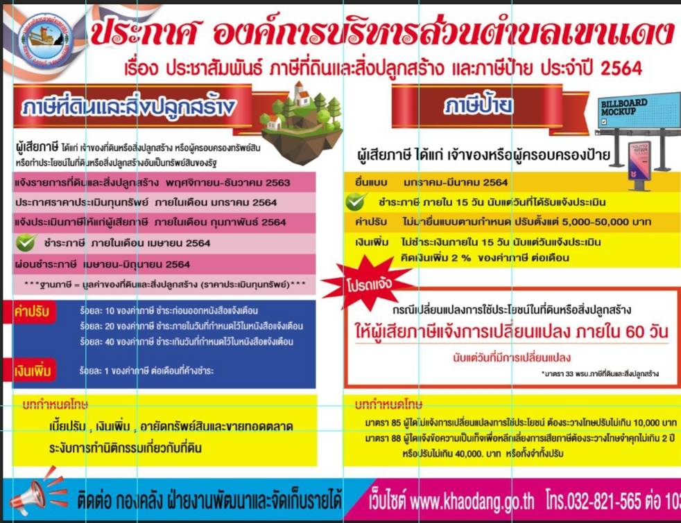 องค์การบริหารส่วนตำบลเขาแดง จะออกให้บริการรับชำระค่าธรรมเนียมขยะมูลฝอย ประจำปี ๒๕๖๓ ณ หมู่บ้านคุ้งโตนด ในวันที่ ๒๔ มิถุนายน ๒๕๖๓ เวลา ๐๙.๐๐ - ๑๒.๐๐ น.